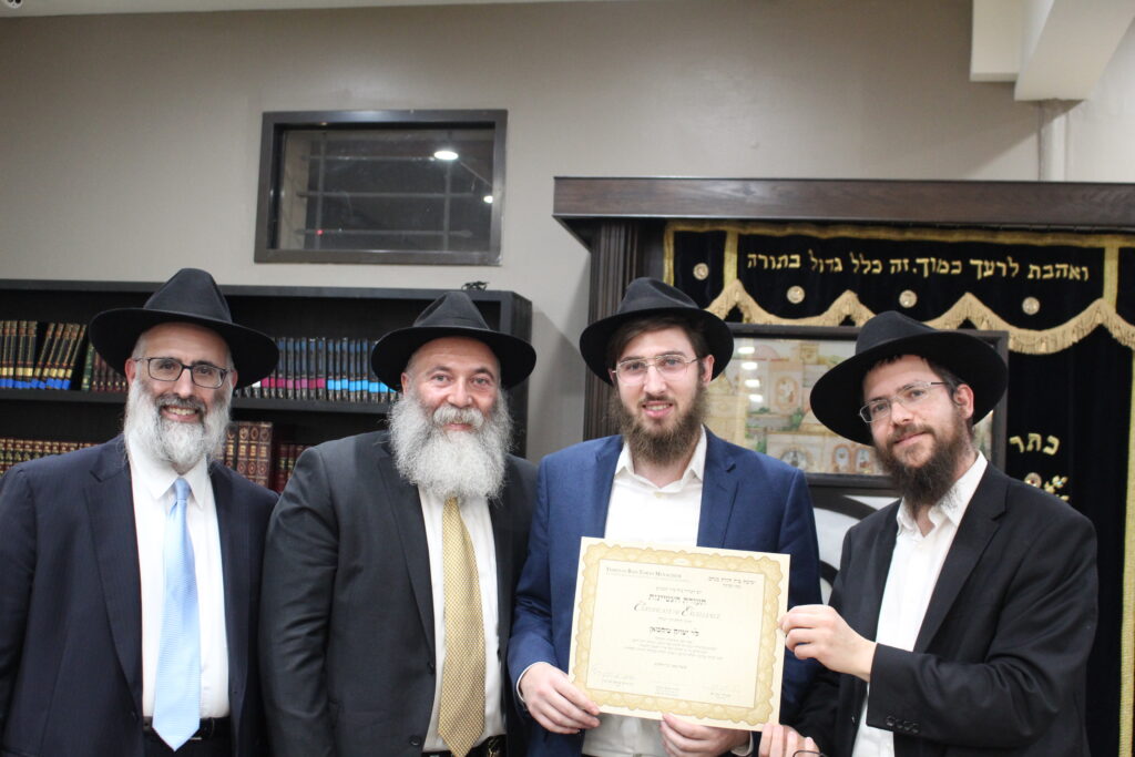 After deliberate thorough learning and review of each section, students are given a pre-test by Rabbi Levi Chazan, and then a final test by Rabbi Elchonon Tauber, Rav and Posek of Congregation Bais Yehuda in Los Angeles. The Smicha ordination is granted to students who are proficient in attendance, diligence, participation, and of course test performance.