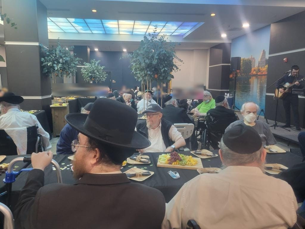 Orange trees perched high above the dining room tables, platters of exotic fruits, and Meilech Braunstein singing, “Ilan, Ilan,” made up the exciting scene that greeted 120 residents on Monday at 2:30pm: when Tu B’Shvat celebrations were in full force at Boro Park Center (BPC).