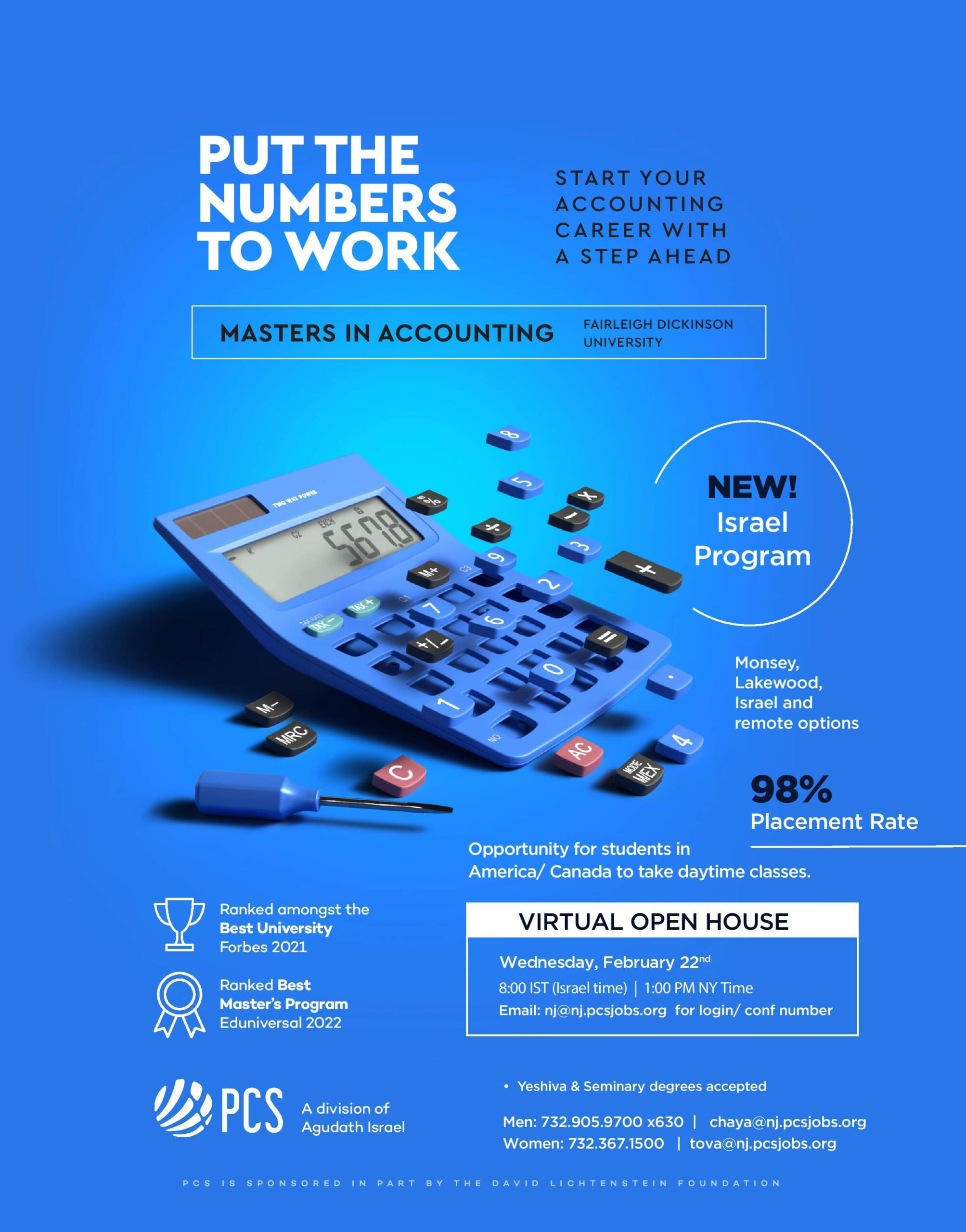 Make the most of your time in Israel and receive your Master’s Degree in Accounting from FDU, a degree from a top rated college, with a 98% placement rate.