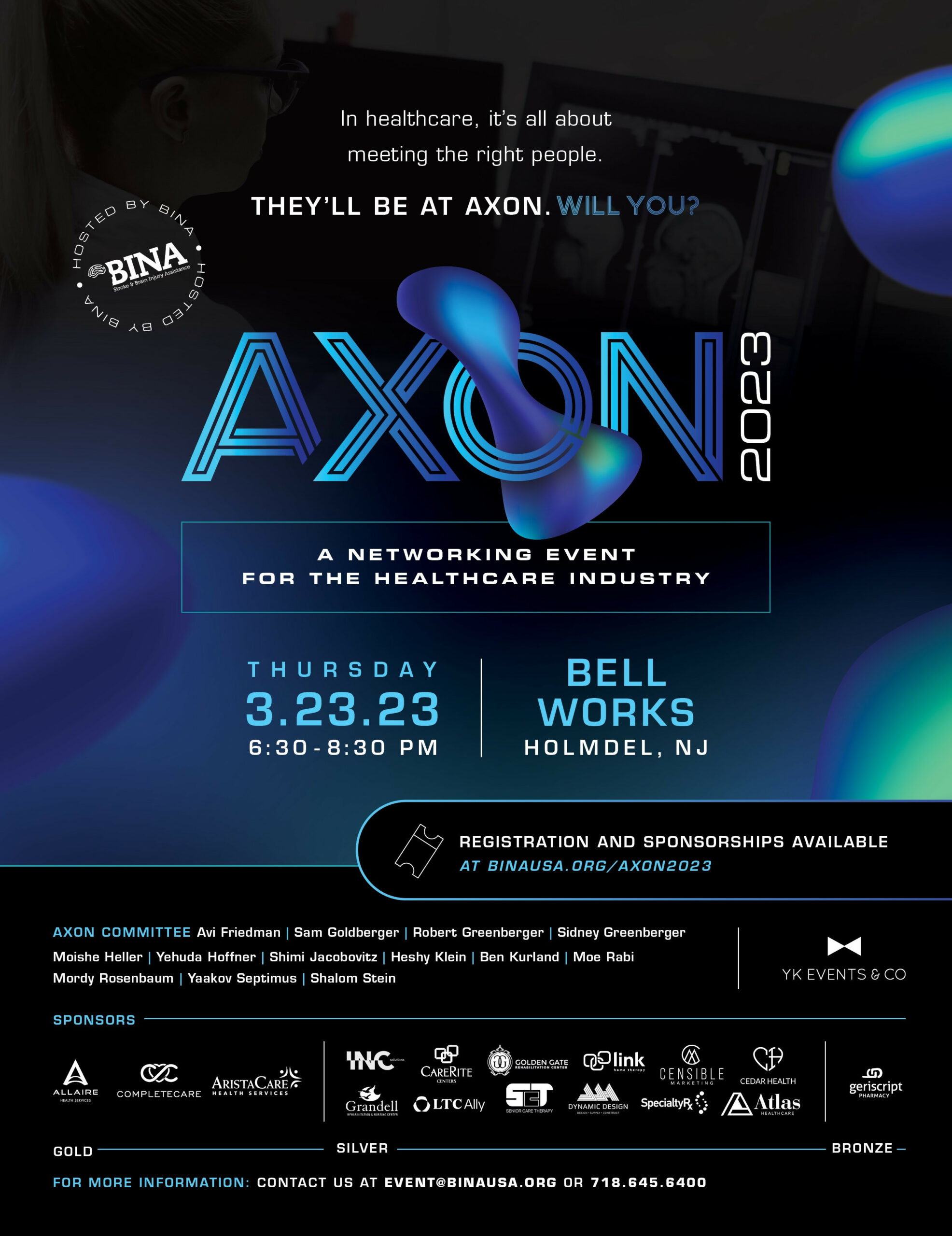 Bina is proud to host AXON – a networking event, uniting companies and professionals in the rehab space. We will be joined by high-profile guests across the rehab field, including but not limited to: hospitals, rehab centers, nursing homes, and nursing home service providers.