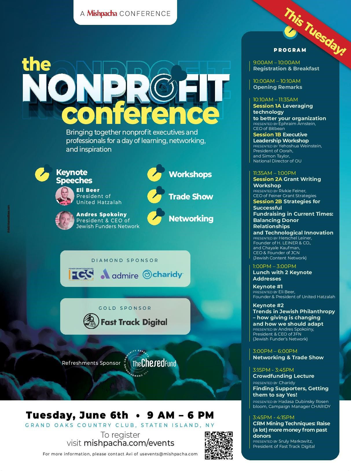 Diamond Sponsors: Admire. Charidy. Feiner Grant Solutions. Gold Sponsor: Fast Track Digital. Silver Sponsor: Abbey & Co. Refreshments Sponsor: The Chesed Fund