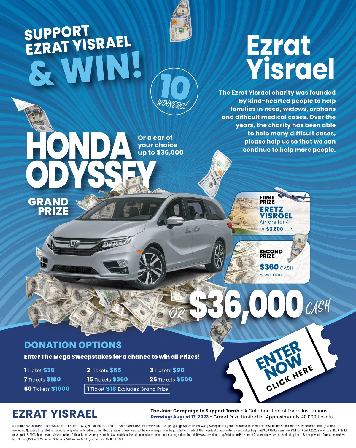 WIN A Honda Odyssey!! + 10 Winnershttps://givvrlive.com/ezratyisrael/raffle23?a=L36