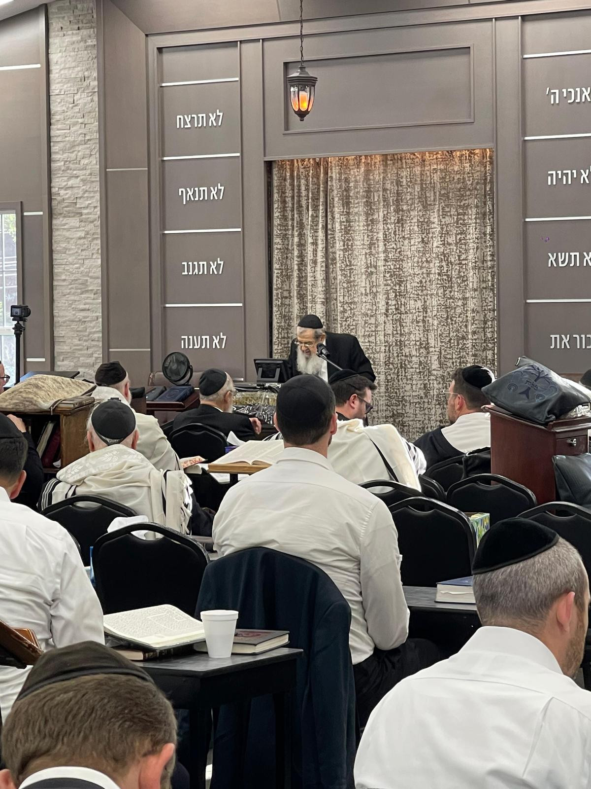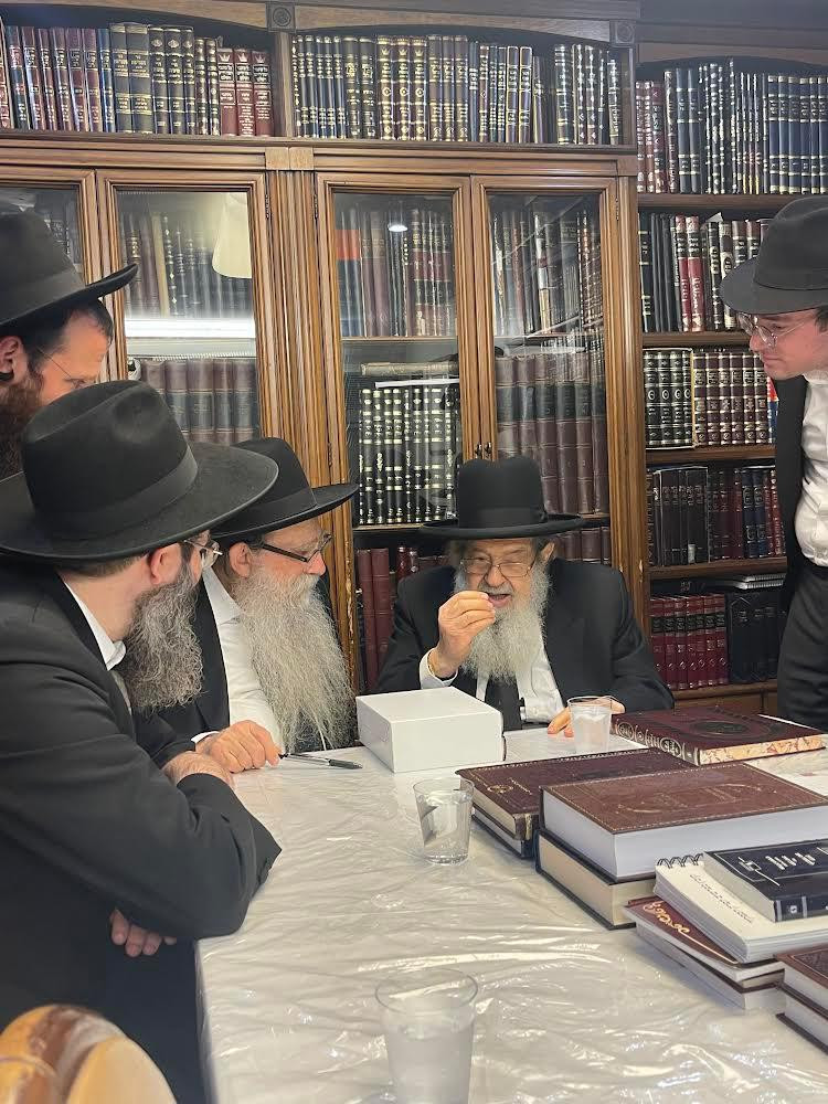 The Rosh Yeshiva travelled due to the difficult economic situation of the yeshiva, despite Rabbi Weisbecker’s illness and treatments. He began his visit in Lakewood, where he was welcomed by the Lakewood Rosh Yeshiva HaGaon Rav Yeruchem Olshin. HaRav Olshin presented Rosh Yeshiva with his sefer inscribed with a personal dedication as a gift. Later, Rabbi Weisbecker delivered a droshas chizuck in the Lutzk shul in Lakewood, led by Rav Zalman Sorotskin, and gave divrei chizuk to the Chashuva kehila at the morning Kollel.