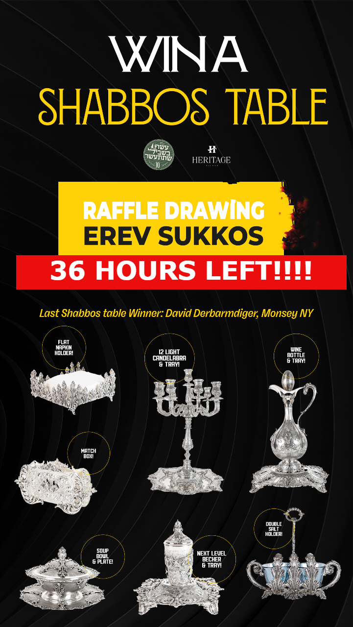 36 HOURS LEFT!!! Win A HERITAGE Silver Shabbos Table!!!