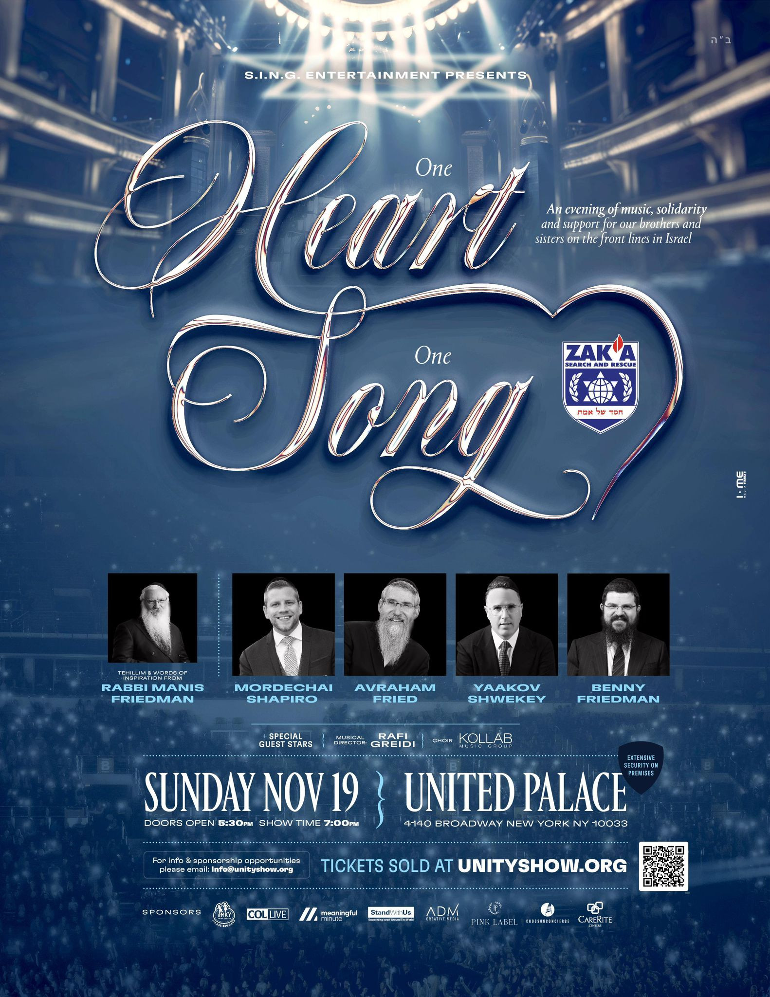 Zaka, the world-renowned organization of Chesed Shel Emes, has just opened ticket sales for “One Heart One Song”, a unity concert featuring Jewish Music’s biggest stars.