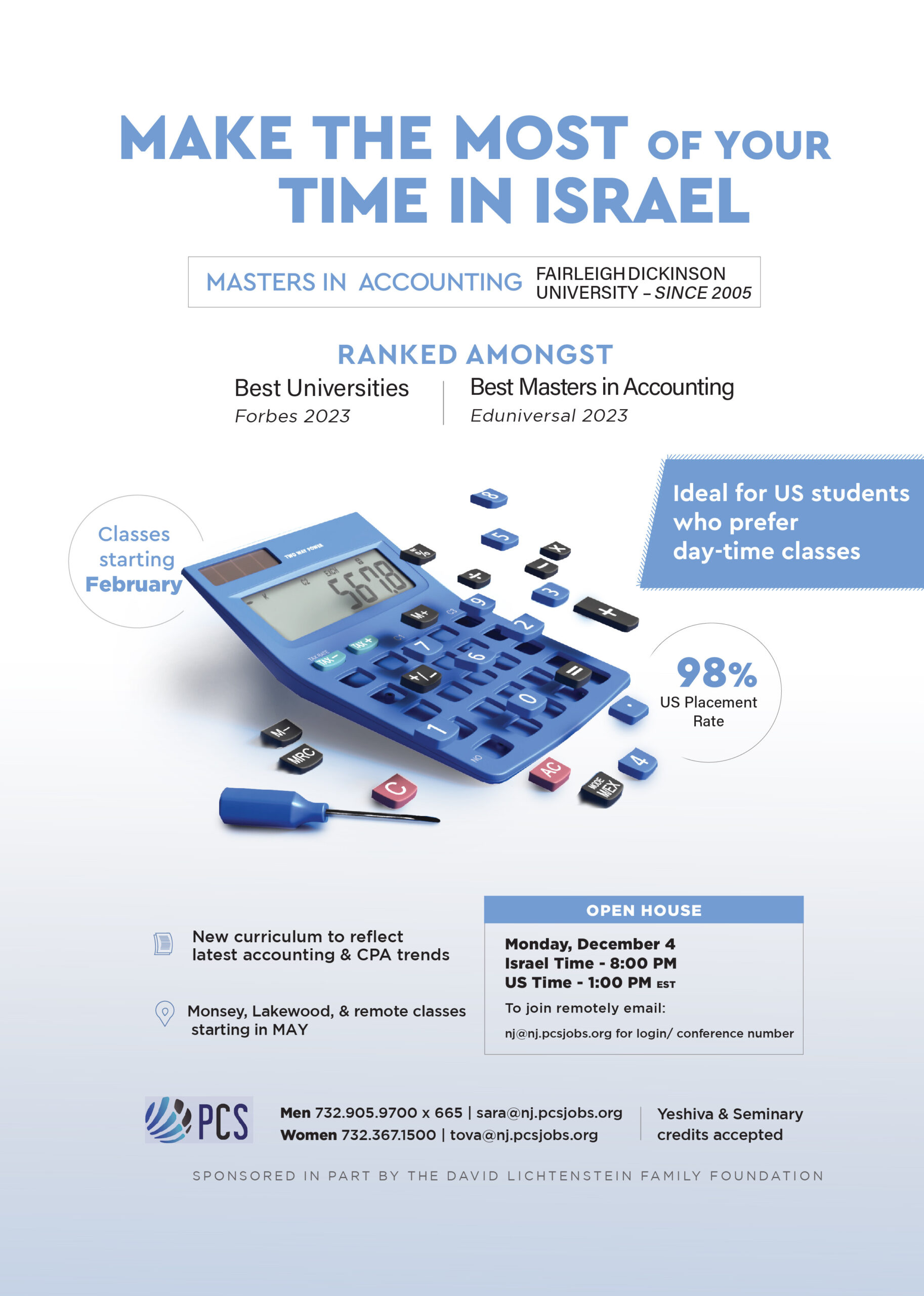 Make the most of your time in Israel and receive your Masters Degree in Accounting from FDU, a degree from a top rated college, with a 98% placement rate.