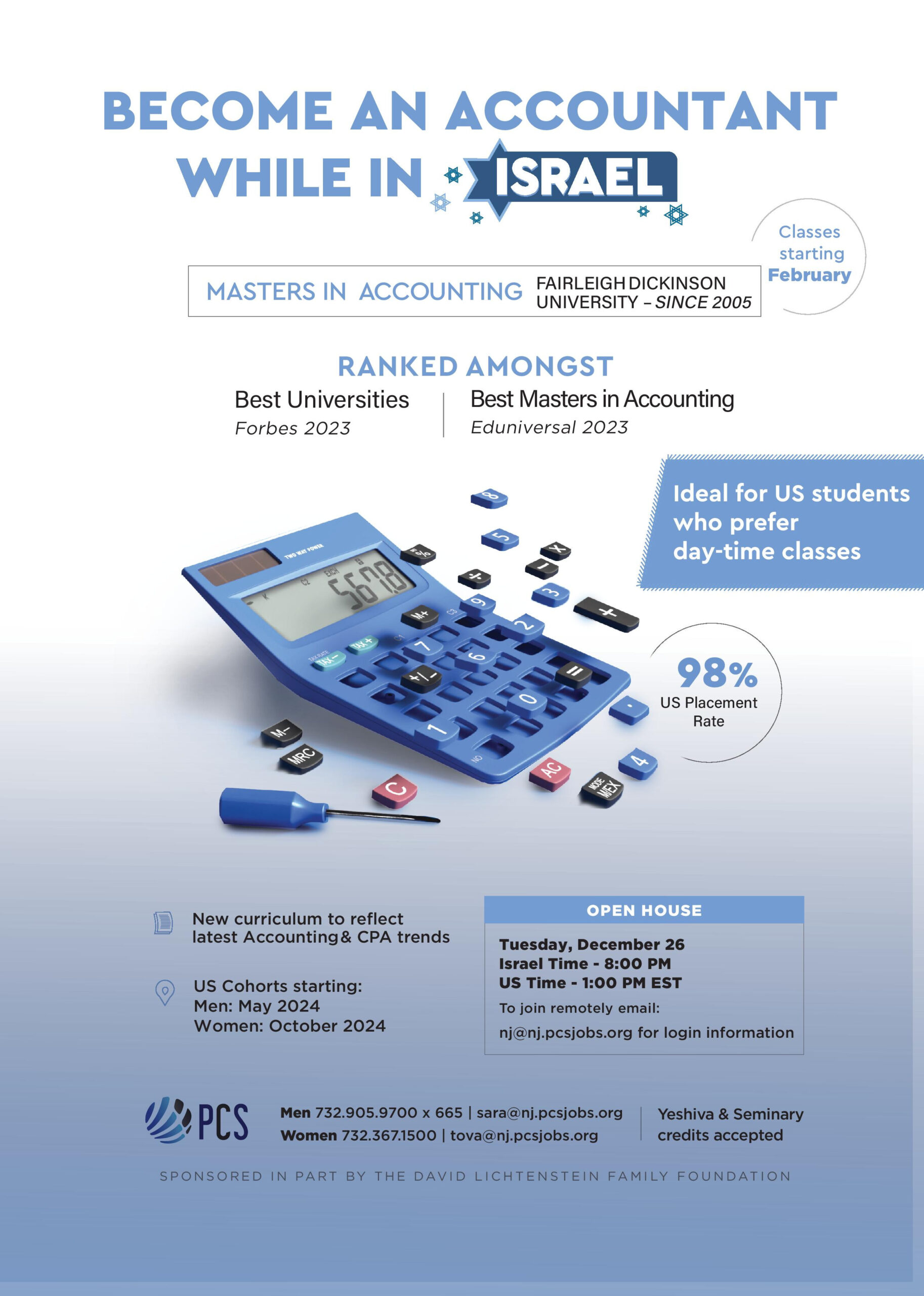 PCS/ FDU Accounting Course Open House Tuesday, December 26th at 8:00 PM Israel Time (1pm EST)