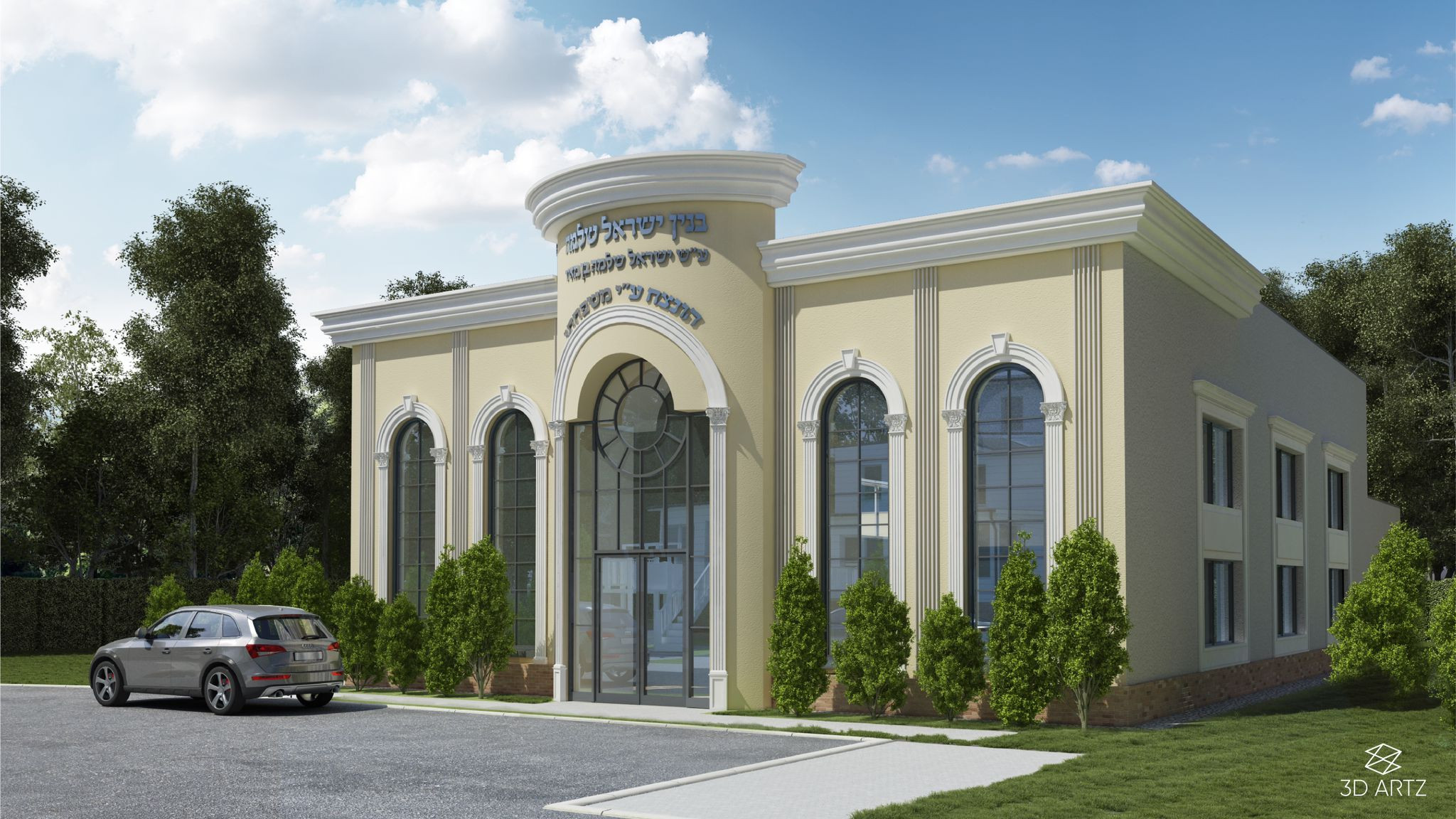 At long last, the Bais Medrash building exterior is near completion. The majestic façade stands tall and proud.