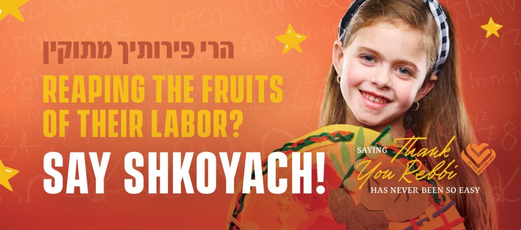 It’s Rosh Hashana L’illanos, a time when we can see the fruits of our labor. Our Rebbeim and Moros put in so much heart and effort, and we see the results of their hard work in our peiros, our children. With Tu B’shvat just around the corner, it’s the perfect time to show your gratitude.