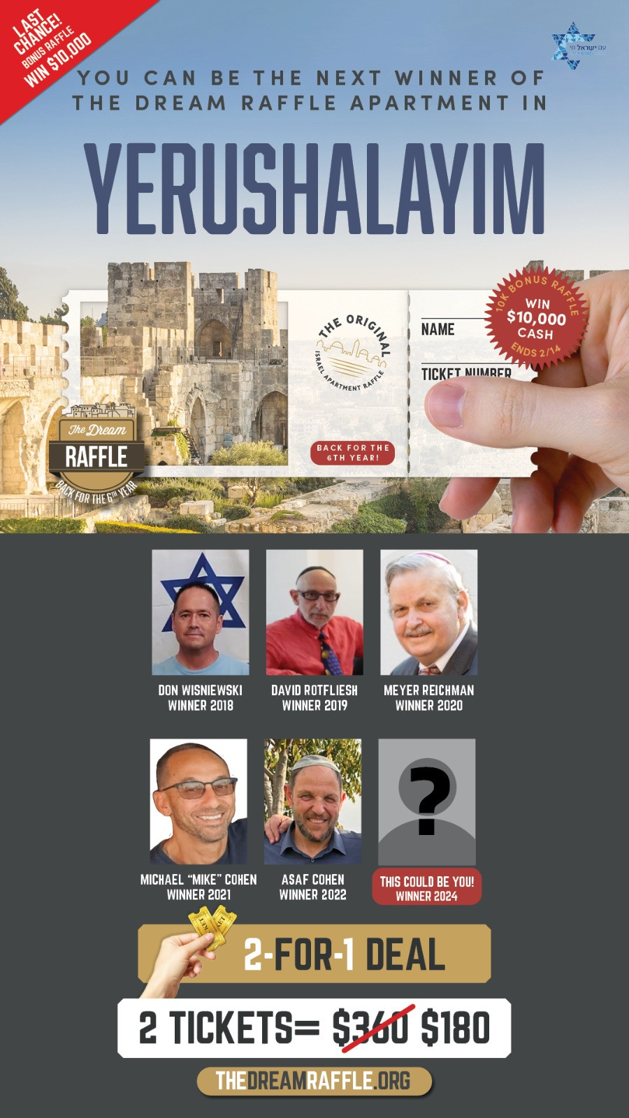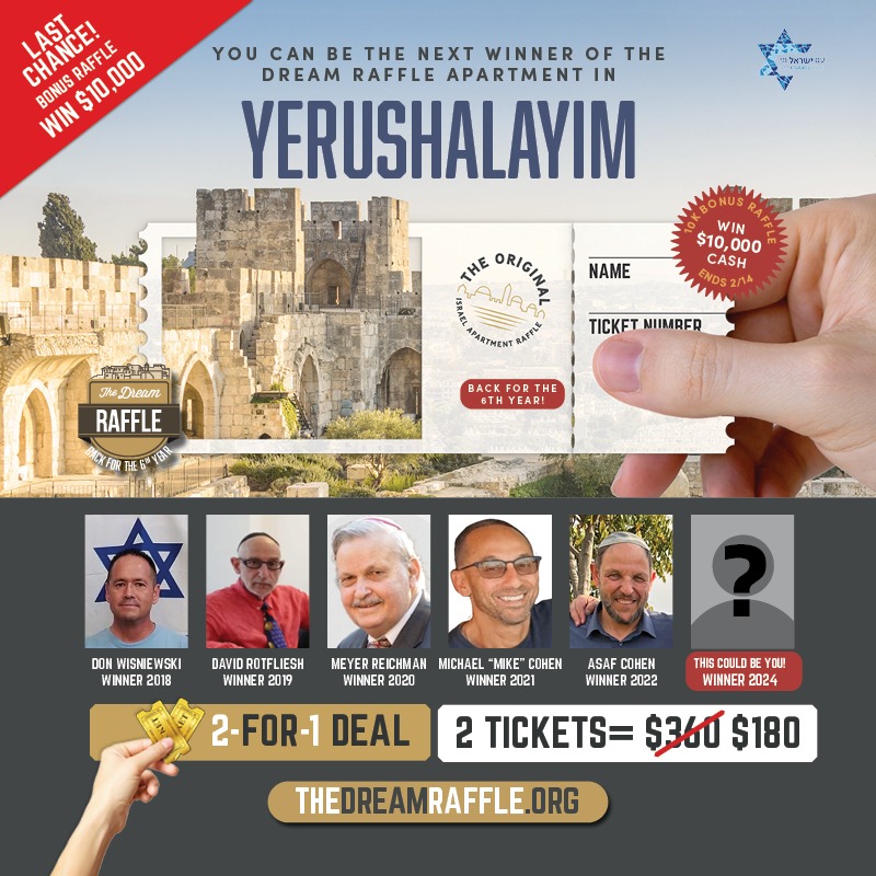 TONIGHT!! Last Chance!!! To Win 10k Bonus Raffle!! + Win a MILLION DOLLAR Yerushalayim Apartment!!!