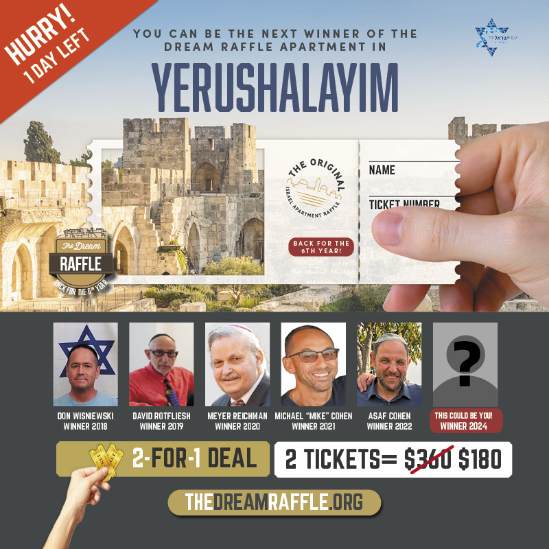 3 HRS LEFT!!!! Win a One MILLON Dream Yerushalayim Apartment!!!