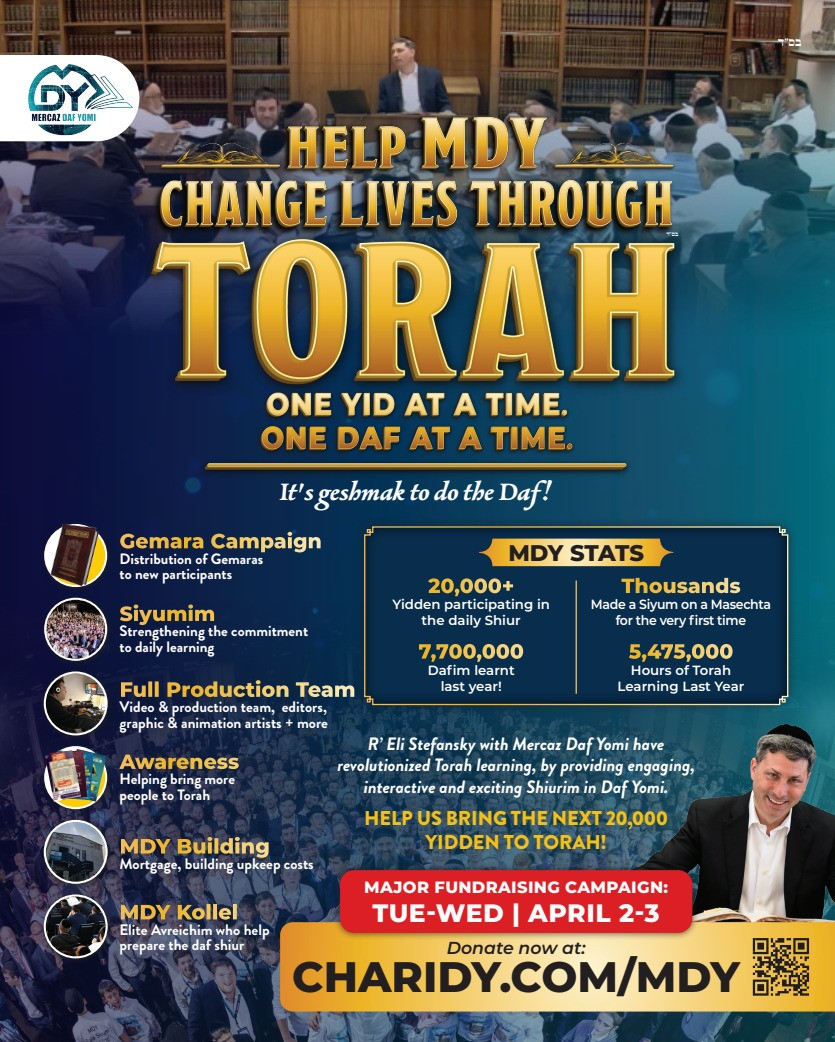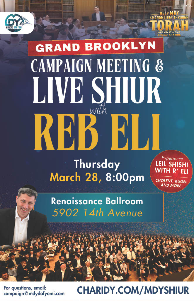 Reb Eli Stefansky is in the US for a series of events and live shiurim to kick off the first MDY Charidy campaign. There will be a series of live shiurim. Plus special women’s event for the wives of the lomdim. see all details below