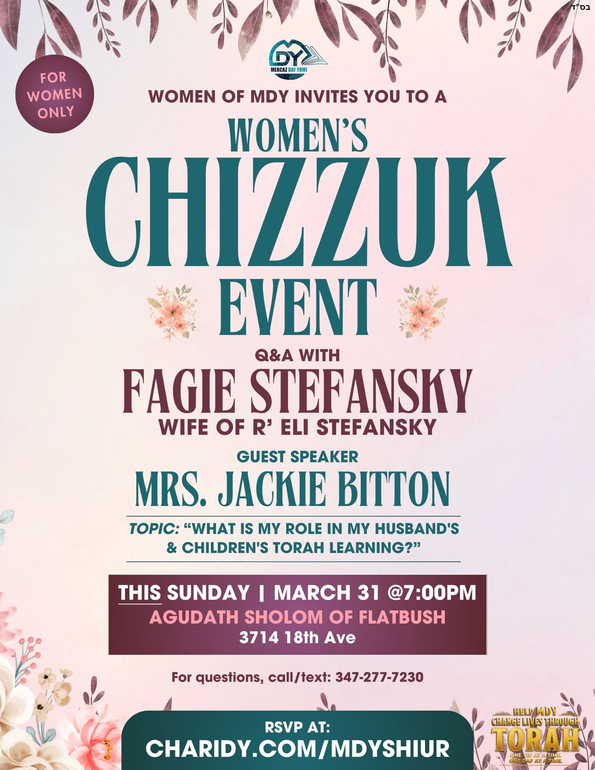 FOR LIST OF ALL EVENTS VISIT https://www.charidy.com/MDYShiur