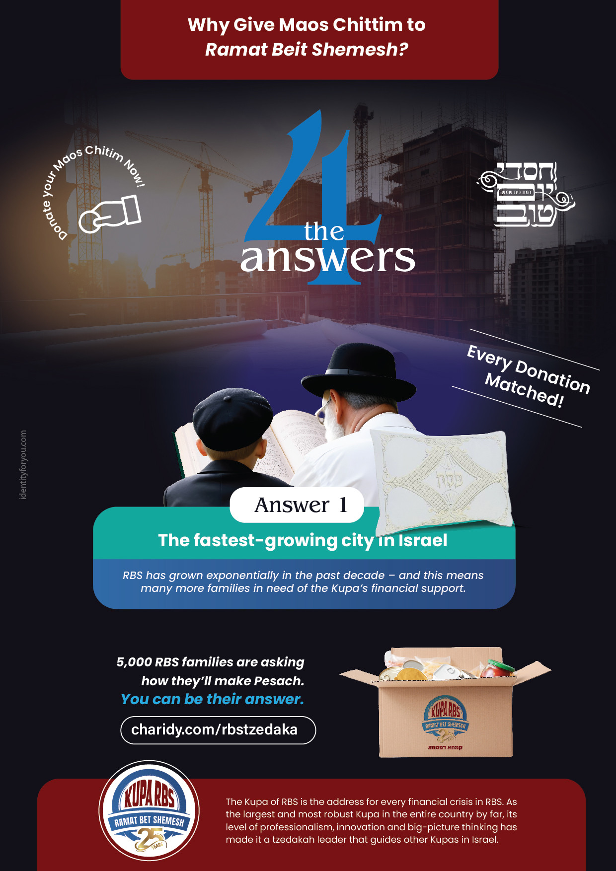Donate now to the Maos Chitim campaign of the Kupa of RBS.