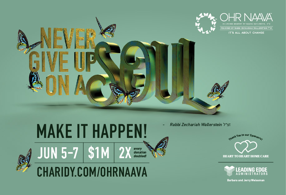 In a world where hope can sometimes feel out of reach, Ohr Naava offers support, guidance, and a renewed sense of purpose to countless girls & women. As we launch our “Never Give Up On A Soul” Charidy campaign, we invite you to join us in making a profound impact on the lives of those in need.