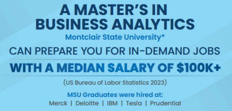 Competitive edge: In today’s data-driven world, businesses rely on data for informed decision-making. This degree equips you with the skills and knowledge to stand out and enter a field with a median salary range of $100,000+ great potential to earn more!