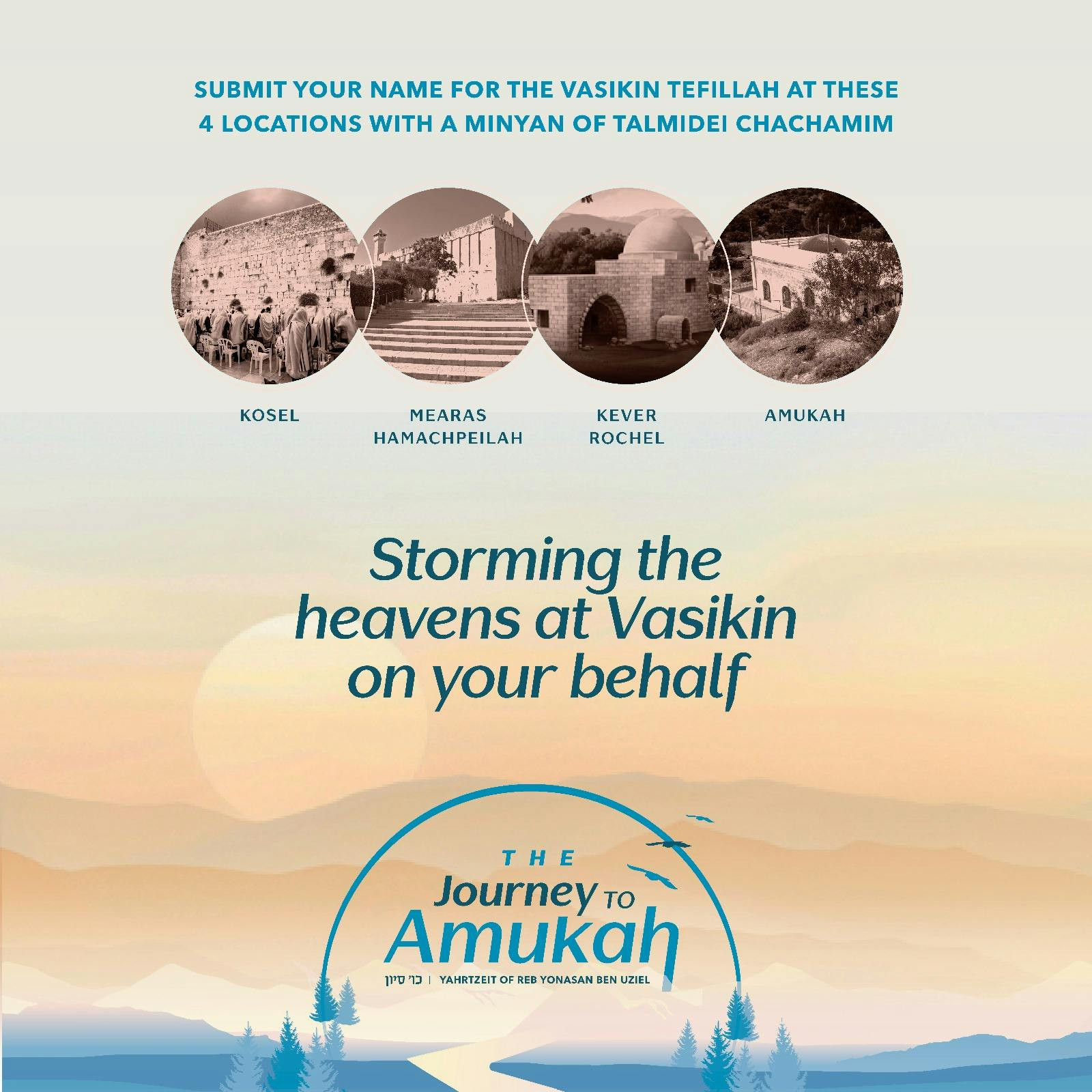They will be joined by minyanim of Talmidei Chachamim at Amukah, Kever Rachel, Me’aras Hamachpela, and the Kosel, who will be completing Sefer Tehillim four times and davening for the yeshuos of all participants.
