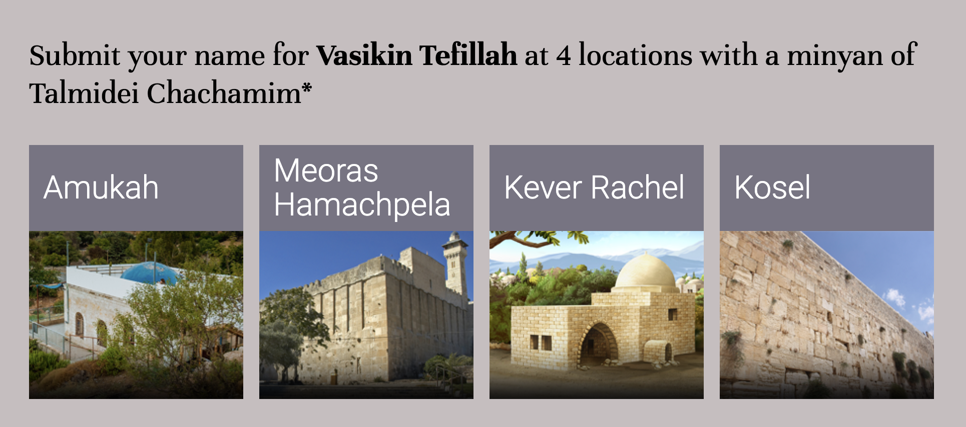 You can submit a name for ANY yeshuah to be recited at all four locations during this historic tefillah and tremendous Eis Ratzon.