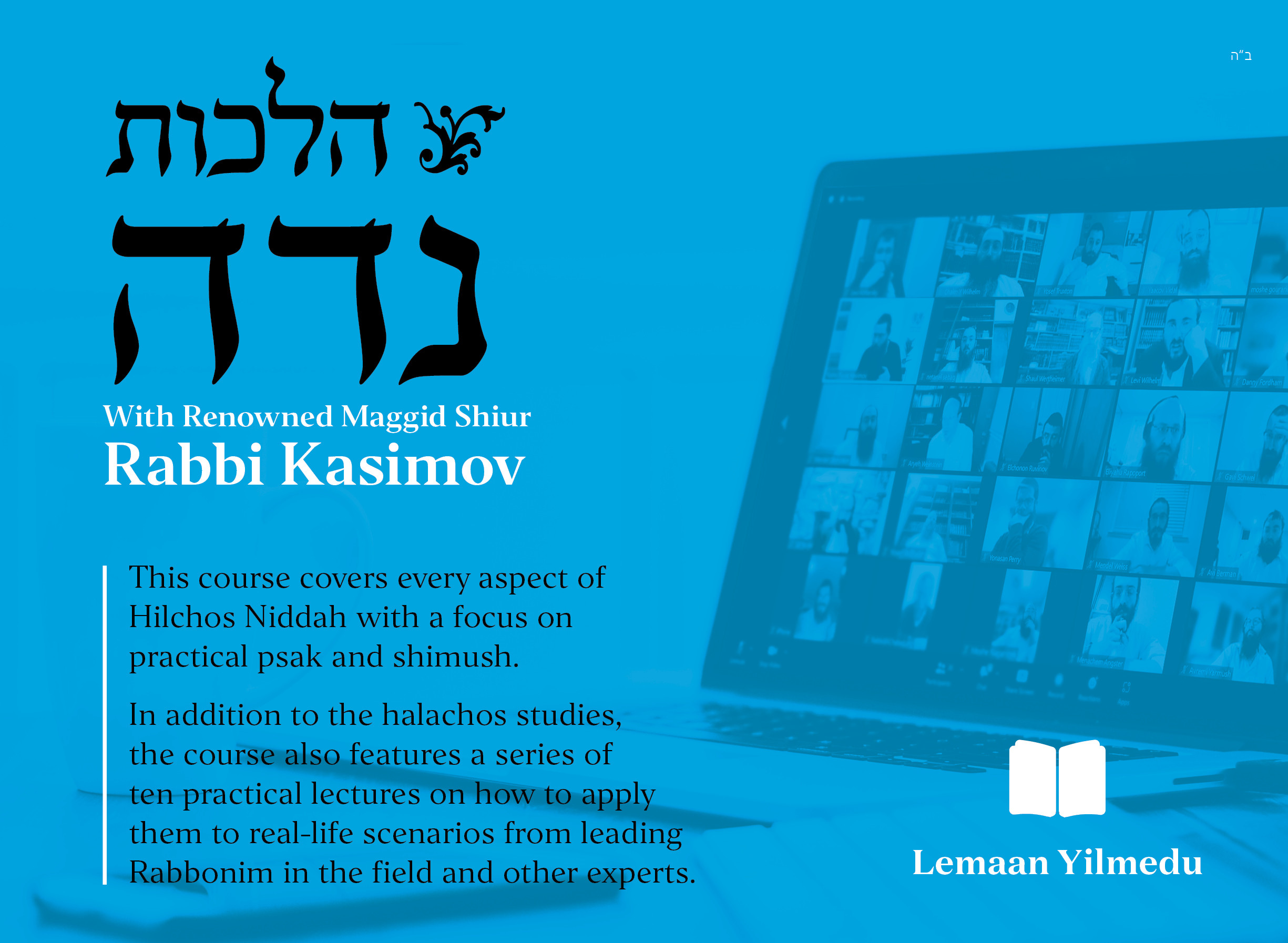 The in-depth syllabus will cover everything from how one becomes a niddah, to vestos, bedikos, kesamim, harchakos, yoledes, shivah nekiyim and tevilah, all studied from the original sources of the Tur, Beis Yosef, Shulchan Aruch and Nosei Kelim, followed by Lemaan Yilmedu’s exclusive study booklets of Shalos u’Teshuvos and Practical Halacha.