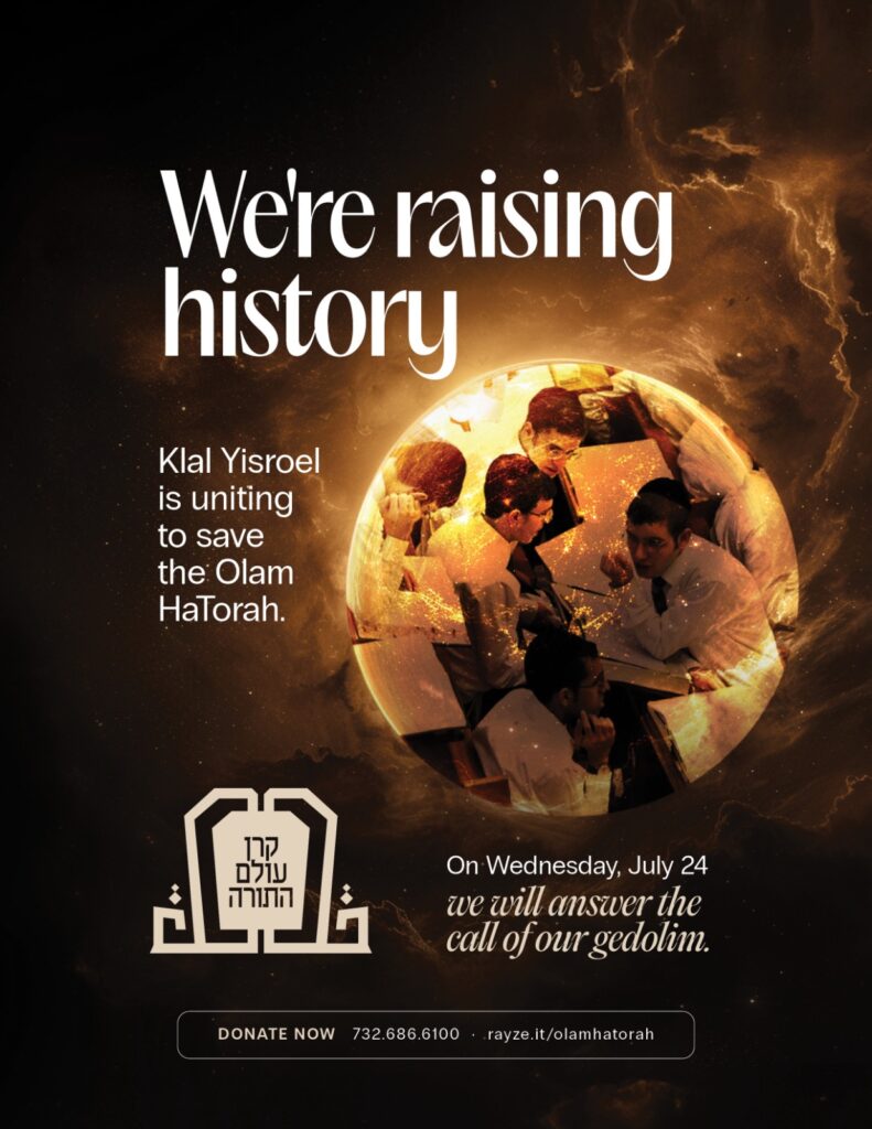 Wednesday, July 24th is the day we prove our commitment to Torah and our dedication to Klal Yisroel. Stand with us, support Keren Olam HaTorah, and become part of this historic movement.