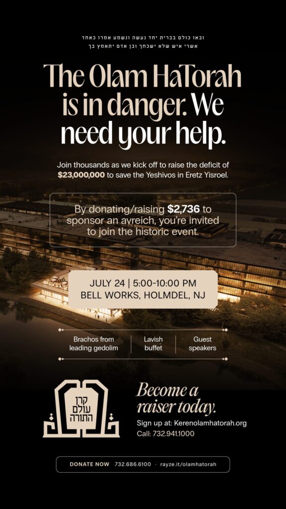 Together with askanim from around the world, we’re inviting you to come and join us for a historic raiser’s event in Bell Works NJ, where we will join together to raise the funds needed to reach our goal.