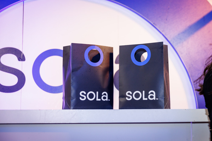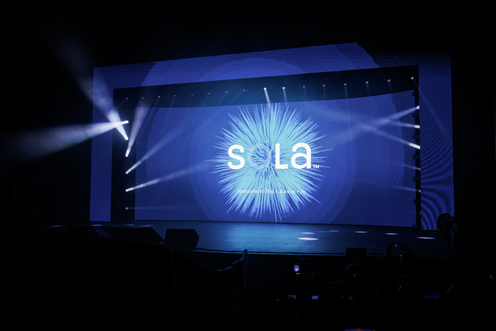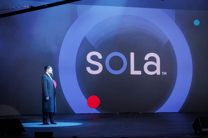 As his message came to a close, an enlarged 3D Sola logo was lowered onto the stage to an outburst of cheer.
