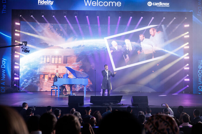 At 7:15pm, the theater doors opened and the crowd began to fill up the arena, abuzz with anticipation. Shlomo Weissman, Fidelity’s Senior VP of Marketing , began the program with a heartfelt opening speech. He spoke of the transformative journey that led to this rebrand, highlighting the tireless efforts and dedication of the Fidelity team over the past two years to make it happen.