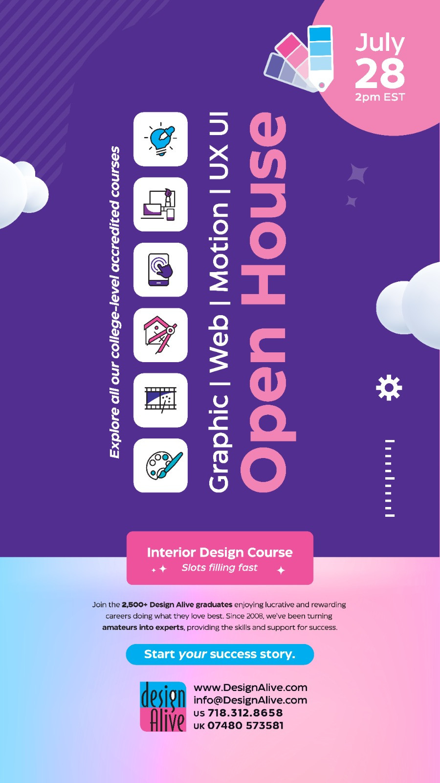 Explore our accredited college-level courses in Graphic, Web, Motion, and UX/UI at our Open House on July 28th at 2 PM EST.