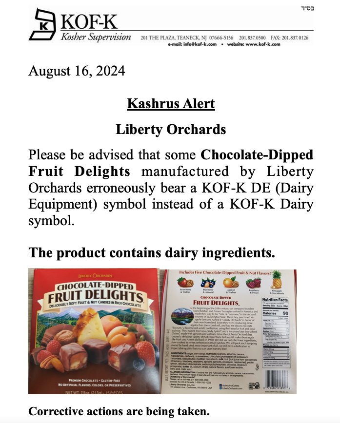 Kashrus Alert From the KOF-K