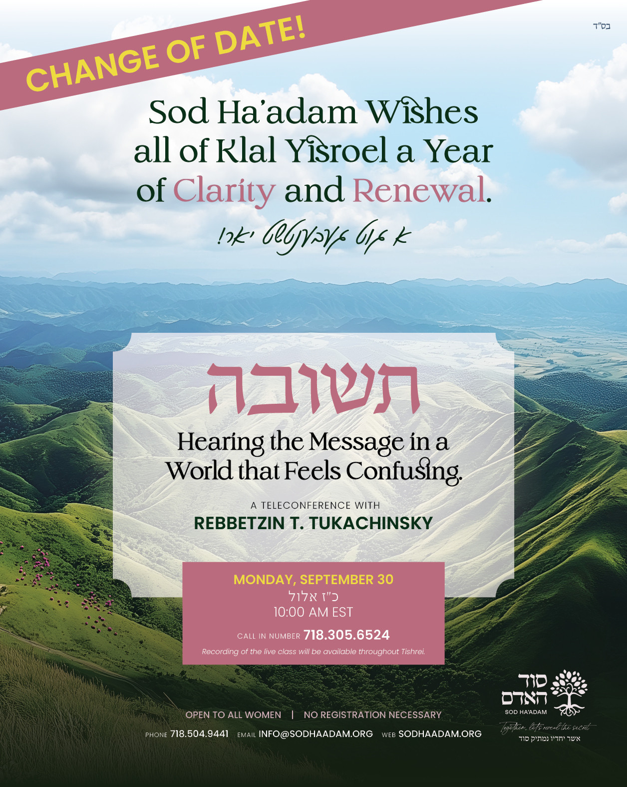 🌸 Recording will be available throughout Tishrei if you can’t make it live. 🌸