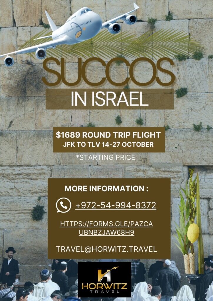 Realizing that thousands of travelers would be stuck without flights to Israel for Succos, they committed themselves to help jews get to Israel for Succos on time and for an affordable price!