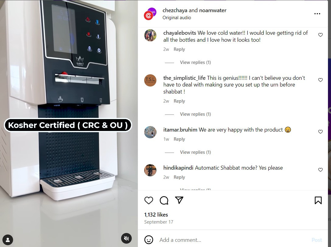 Ayala: Of course. The reviews have been glowing! People love it — not just the convenience and the filtered water but how it makes a difference in daily life, especially for Shabbos. I did my research and my friends in Israel were laughing at all my questions. They can’t believe how this is a new product for us here. Noam was even voted Israel’s “Best Product of the Year 2023,” which speaks volumes.