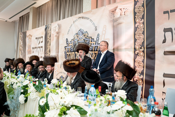 A historic Hachnoses Sefer Torah ceremony took place before Yom Kippur in Ratzfert, Hungary, with a large crowd of hundreds of Yidden from all corners of the world. The Hachnoses Sefer Torah took place on the yahrzeit of Rebbe Naftali Hertzka of Ratzfert, who passed away on Erev Yom Kippur in 1897.