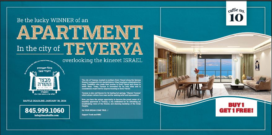 By purchasing this raffle you help support Mivtzar Hatorah – a network of 6 kollelim located in Yerushalayim, Teverya, Beit Shemesh, Elad and Ashdod and Monsey that consist of over 400 Avreichim.