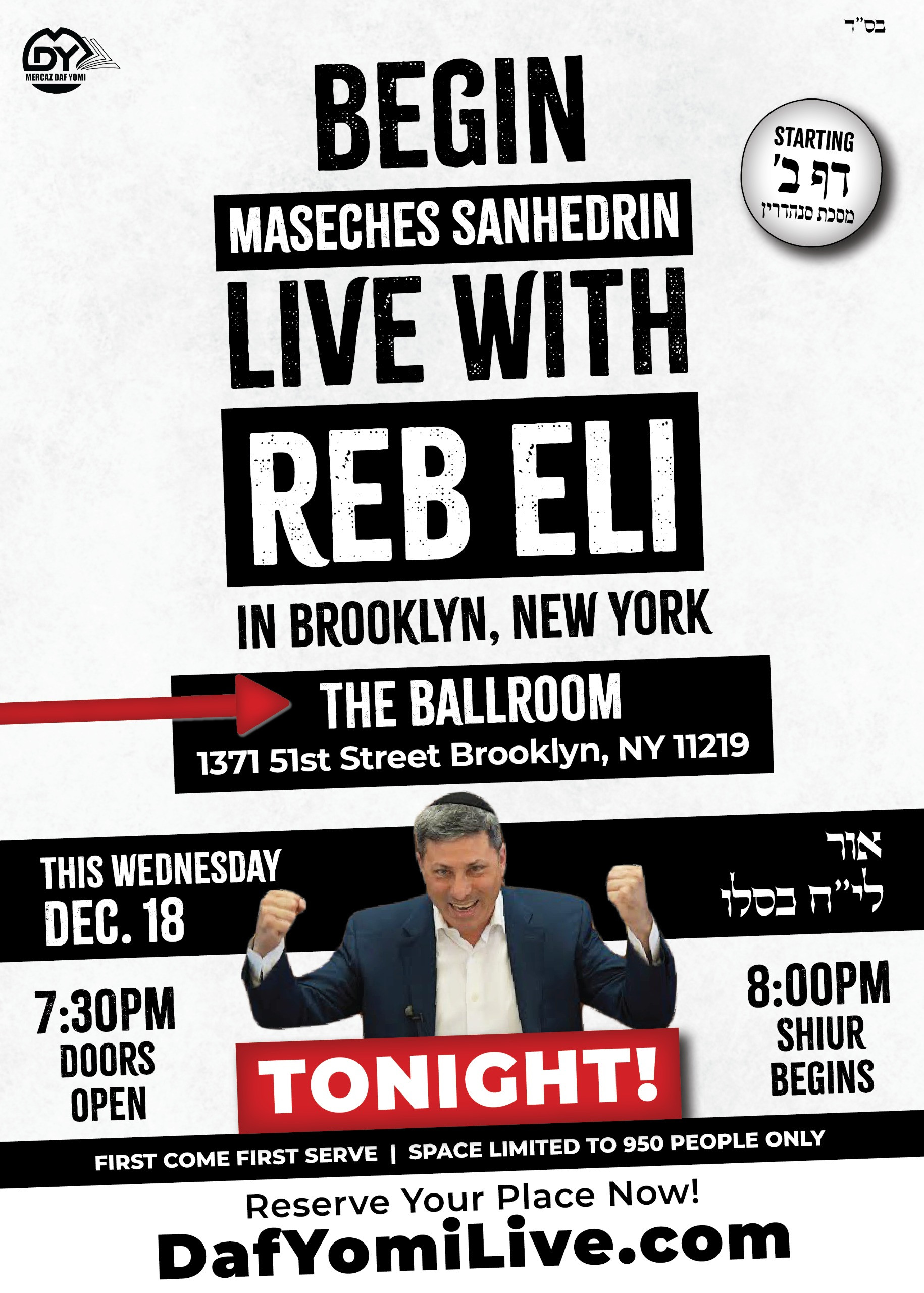 Before embarking on his sold out Shabbaton, Reb Eli will begin with a live shiur in Boro Park tonight!