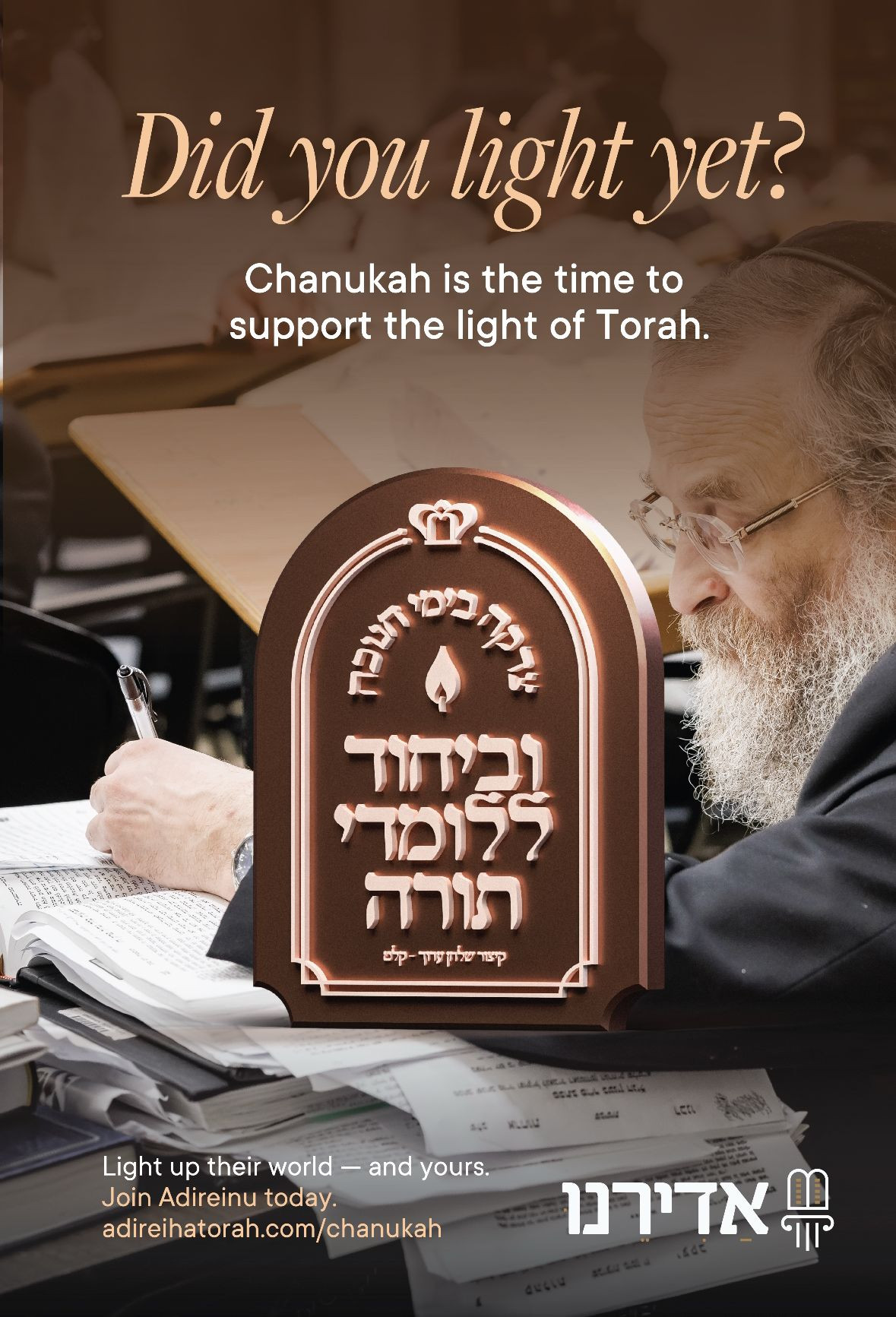 This Chanukah season, Adireinu is inviting people to bring light into their lives through Limud Torah.