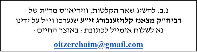 מאת הרה”ק מצאנז קלויזענבורג זי”ע