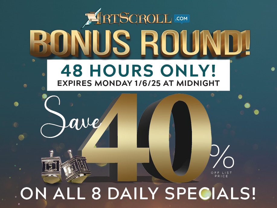 During Chanukah, ArtScroll offered 8 amazing daily specials at 40% off. Missed out? Don’t worry! From Motzei Shabbos through midnight on Monday, we’re bringing back all 8 deals!