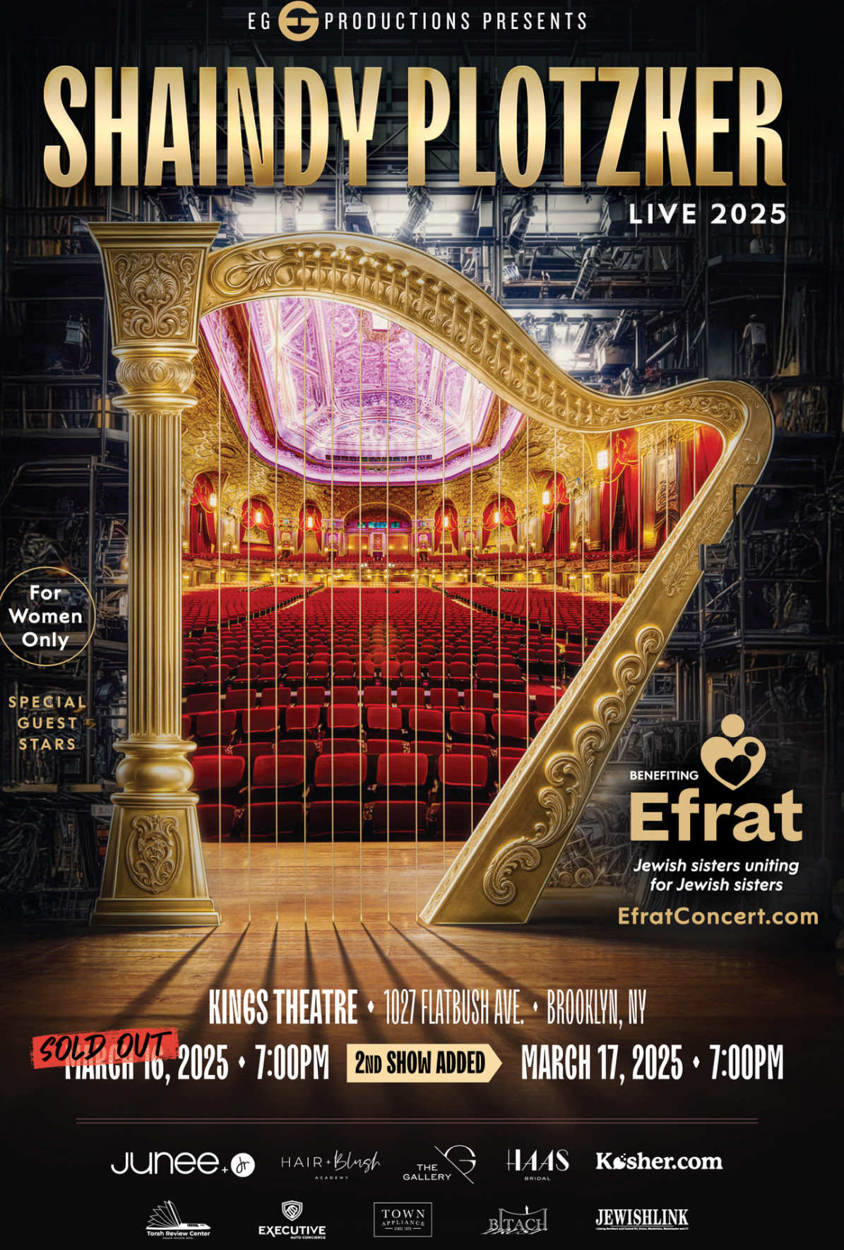 “Shaindy Plotzker Live 2025”, the female benefit concert of the year, will now will take place on March 16th AND 17th! Produced by the incredible Eli Gerstner & EG PRODUCTIONS and held at the prestigious KINGS THEATRE in New York, it’s a high level event that you don’t want to miss.