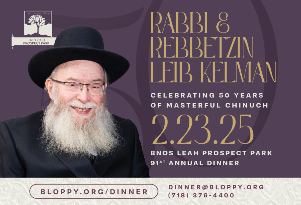 Now in its ninth decade of providing students with an exceptional education, Bnos Leah Prospect Park will be holding its annual dinner on February 23rd. Held at the Kol Yaakov Hall, the evening will honor the school’s dean, Rabbi Leib Kelman שליט״א , a master mechanech who is currently in his 50th year of service at Bnos Leah.