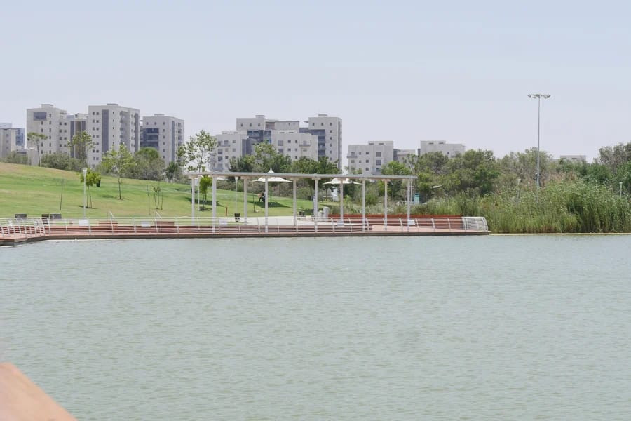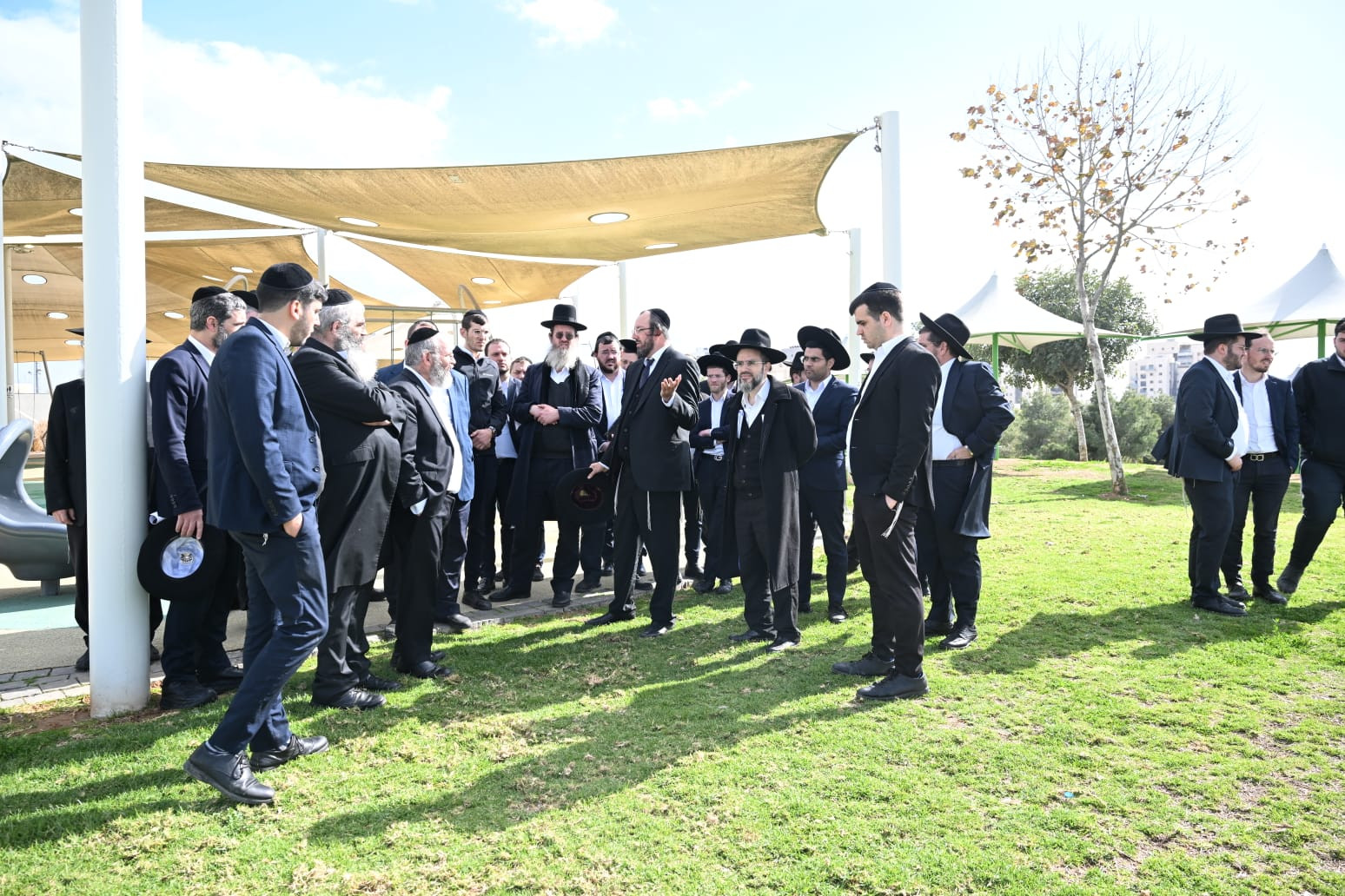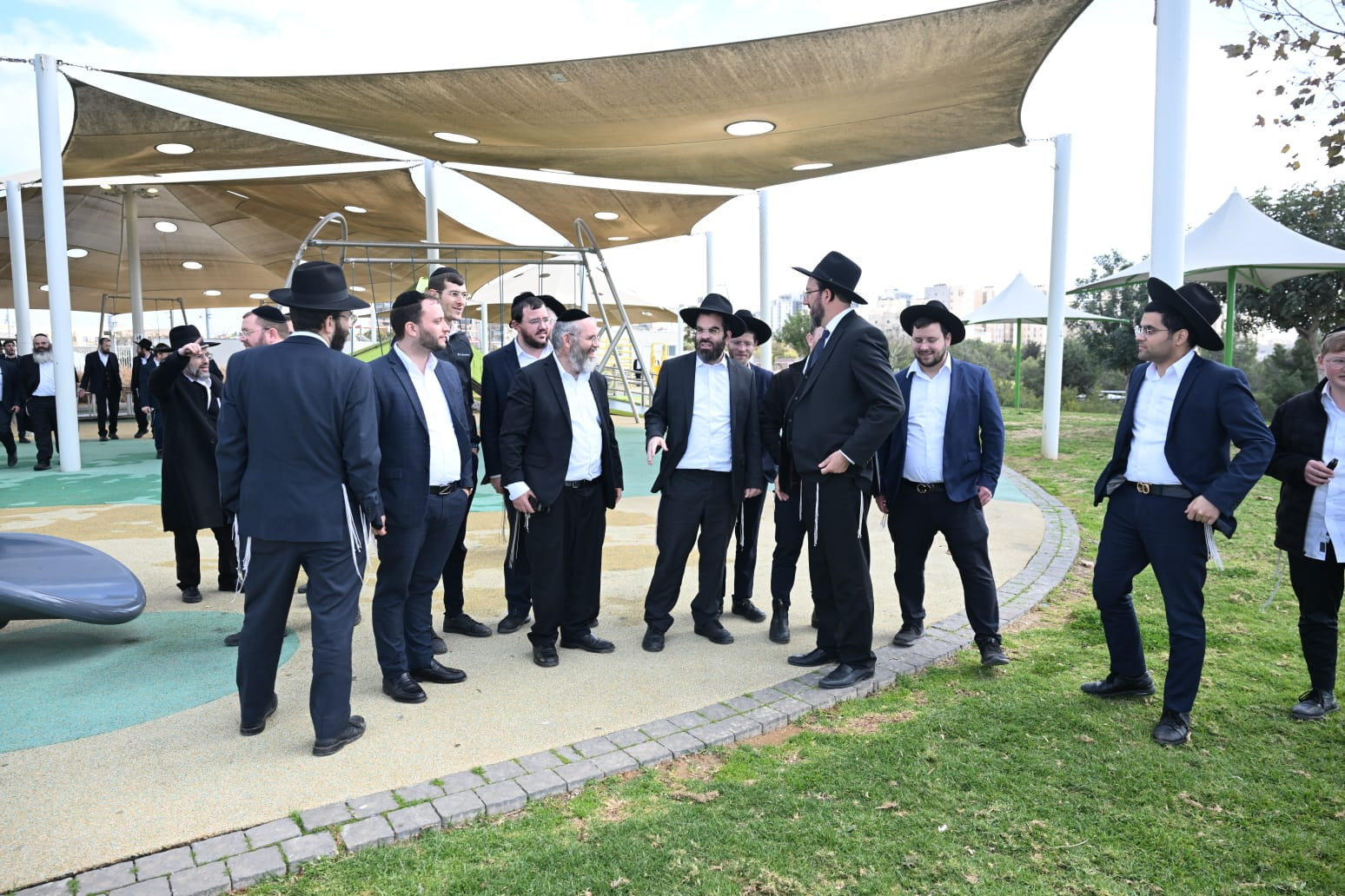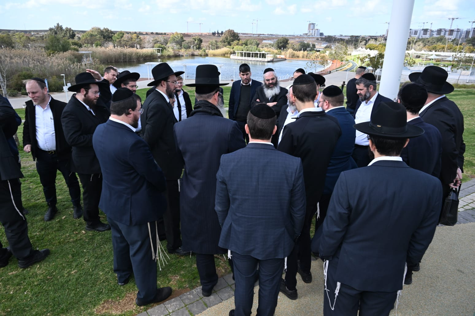 From there, they proceeded to Park HaAgam, an incredible scenic development overlooking the city, on par with Yarkon Park in Tel Aviv, featuring a lake, vast green lawns, and spacious open areas. The group then continued through the commercial centers, which include a full range of stores catering to the chareidi tzibbur, from major kosher food chains to clothing stores and essential household goods. The community leaders expressed their amazement at the vibrancy and rapid growth of the city, noting how families are zoche to raise their children in a shamur, Torahdik environment.