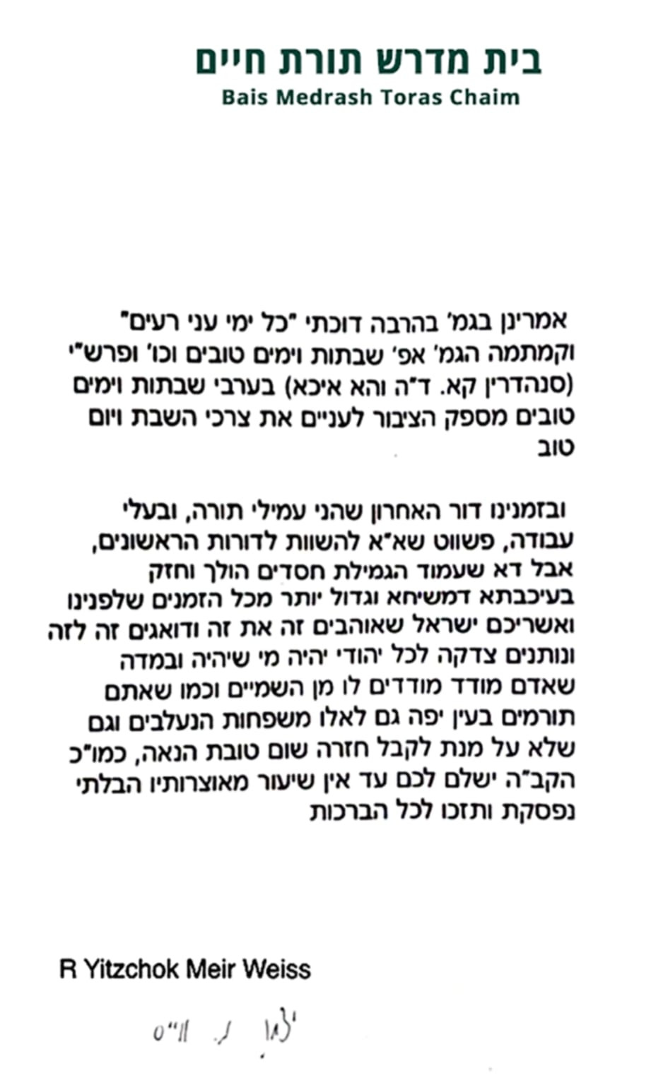 But there is one day with the unparalleled ability to overturn even the harshest g’zeiros—Purim. A day of V’nahafoch Hu, when sorrow turns to joy, darkness to light, and despair to salvation.