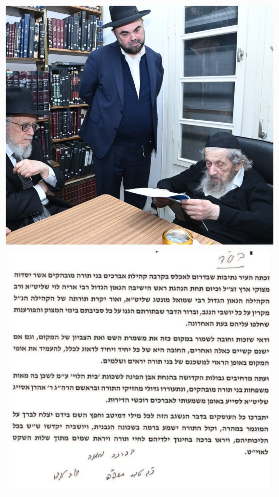 A letter from Maran HaRav Dov Landau, shlit”a, addressed to the hundreds of avreichim who purchased homes in Kiryat Beit Halevi, delivered at the maamad hanachas even hapinah