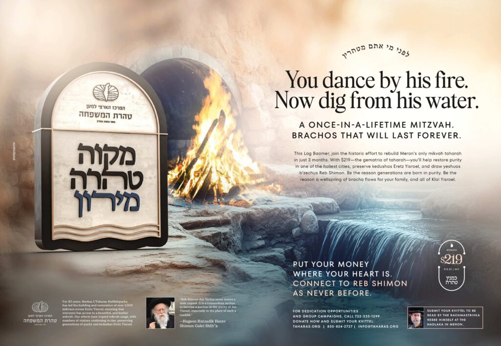 Under the guidance of Gedolei Yisroel, Merkaz L’Taharas HaMishpacha is spearheading a complete rebuild of Mikvah Meron—kosher, beautiful, welcoming, and on track for completion within three months, b’ezras Hashem.