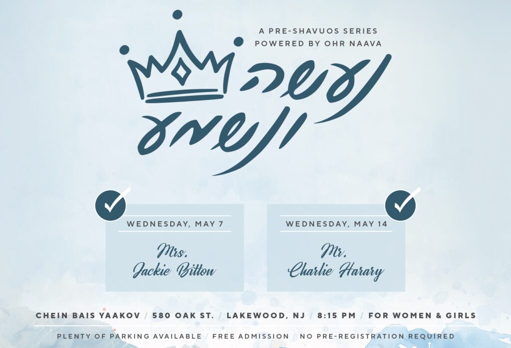 Shavuos prep starts now! Join Ohr Naava for the highly anticipated Na’aseh V’nishma series, designed to uplift and inspire your Shavuos experience.