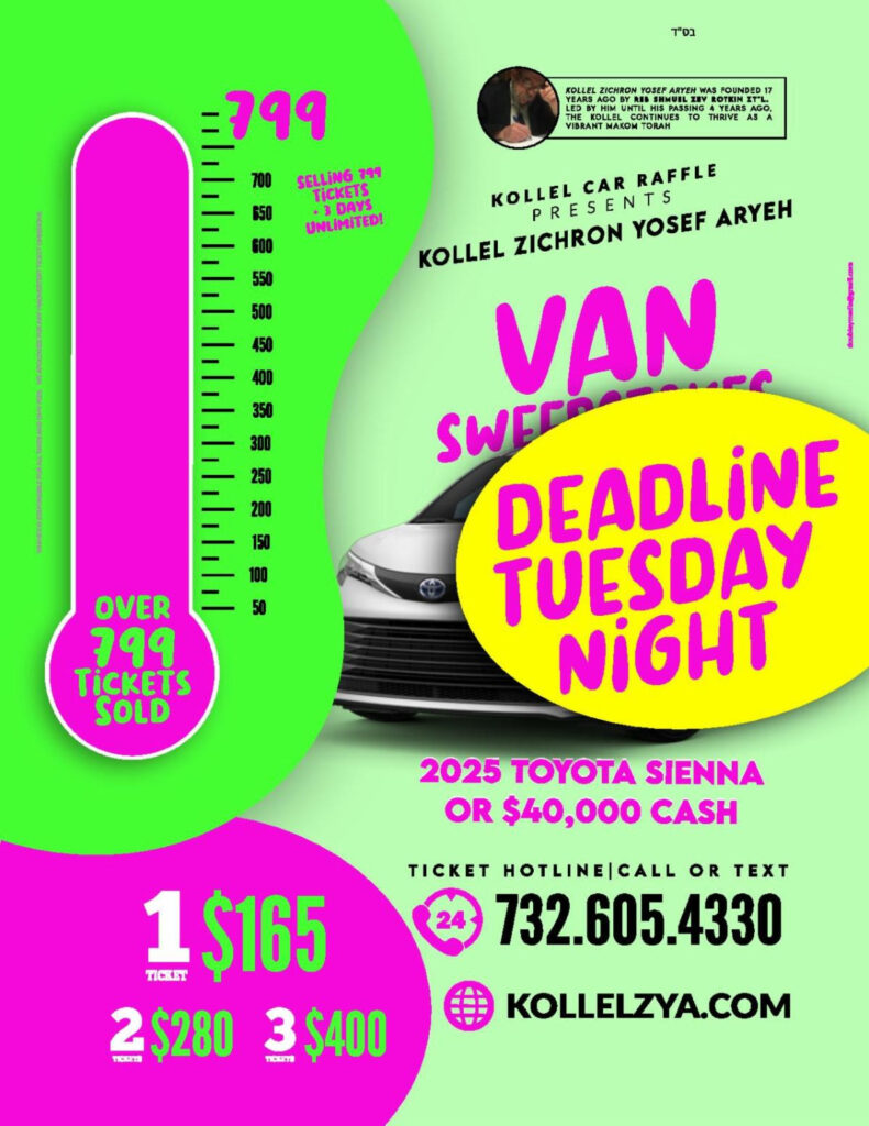 TONIGHT!!! WIN SIENNA OR $40K!! WIN TONIGHT!!Help support Kollel Zichron Yosef Aryeh