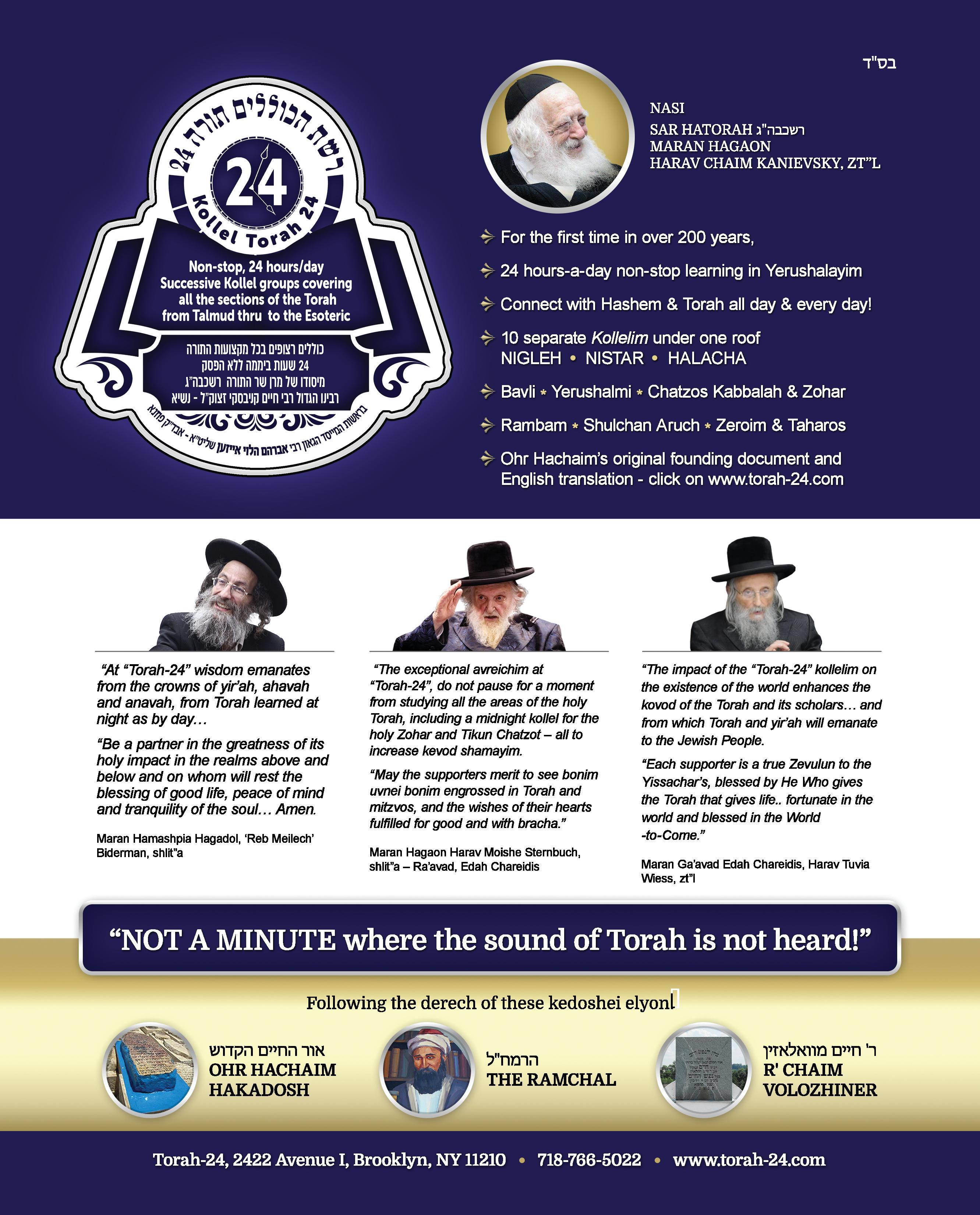 For more “Torah-24” information click on: www.torah-24.com or call 718-766-5022