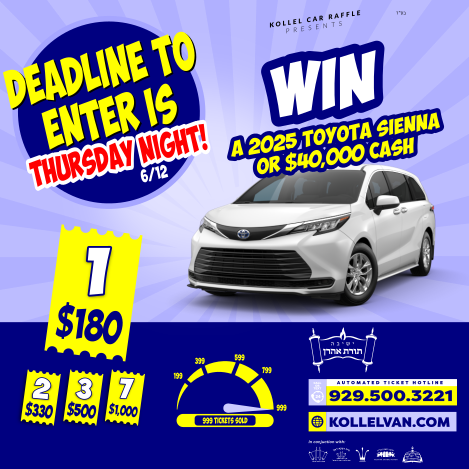 24 HOURS LEFT!!! WIN SIENNA OR $40K!! WIN TONIGHT!!Help support Kollel Toras Aharon