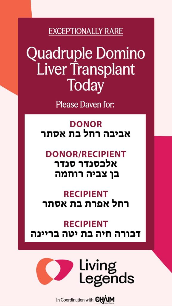 This complex chain of transplants, orchestrated by Living Legends in coordination with Chaim Medical Resources, marks the first known quadruple live liver transplant of its kind in the region.