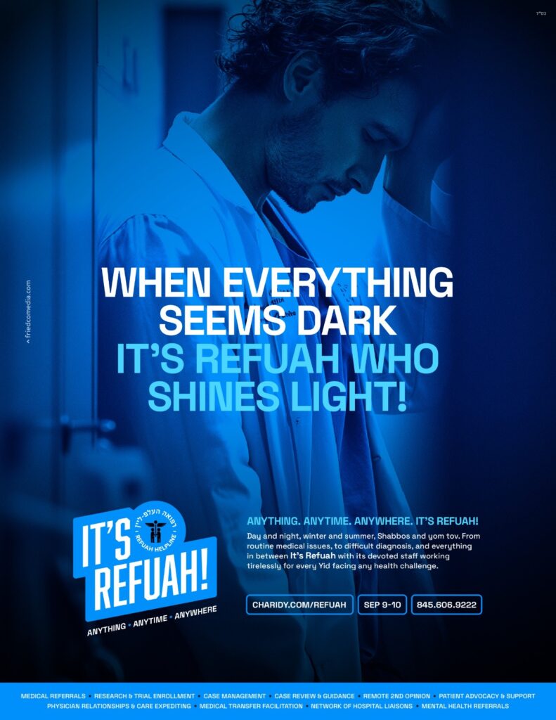 Today and tomorrow, Sep 9. & 10, Klal Yisroel will come together to rally once again in support of the organization that has become synonymous with advocacy, compassion, and of course, results. The campaign will be decisive in ensuring that Refuah Helpline can continue serving thousands of Cholei Yisroel in the year ahead.